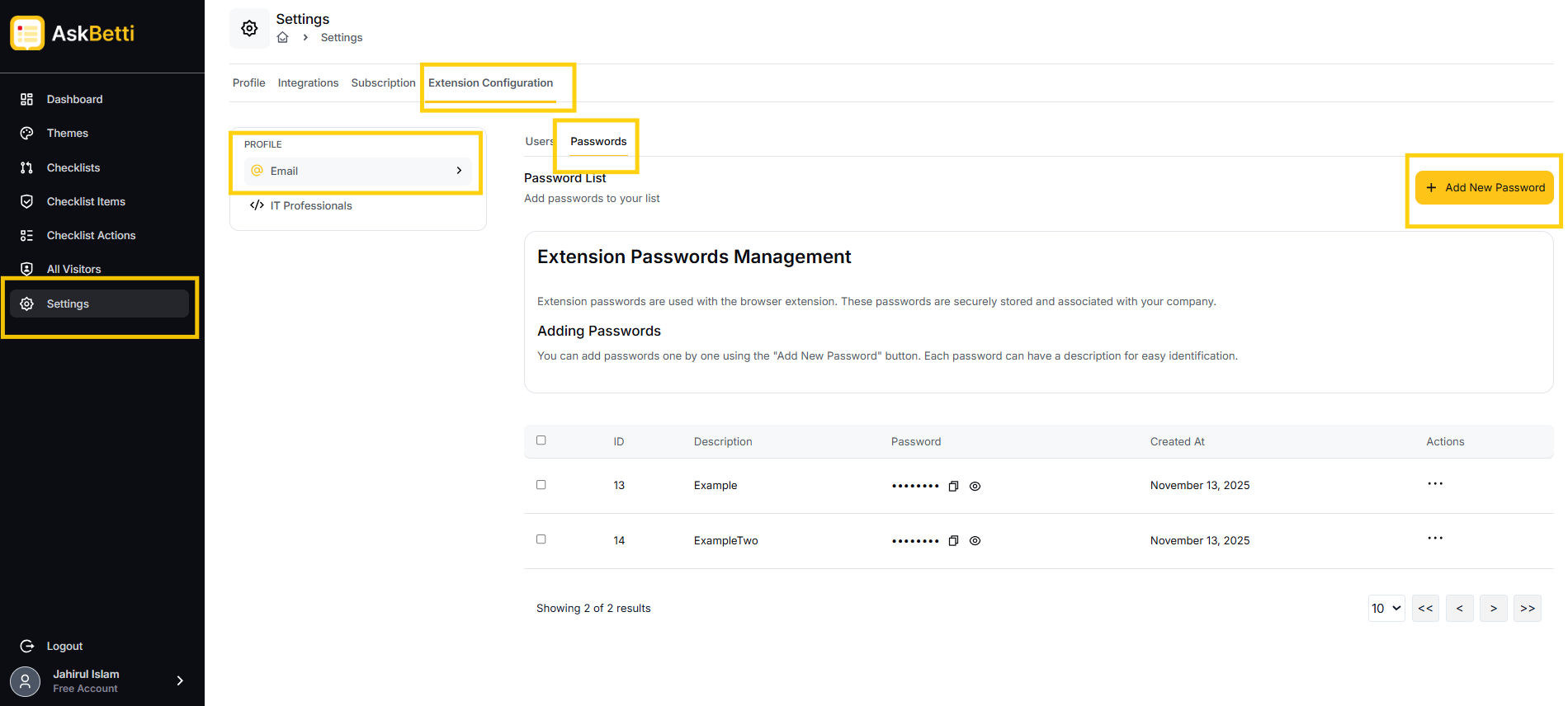 - Cluck on + Add New Password
