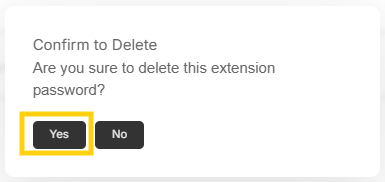 To delete extension password: