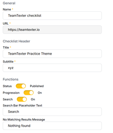 - Status: Toggle this on to Publish your checklist, making it visible to your users.
