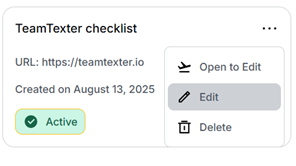 Once you've created a checklist, you can manage it from the main Checklists page.