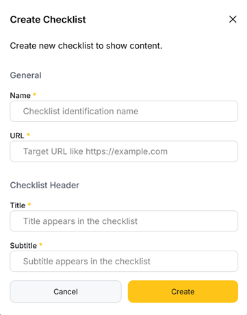A checklist is a collection of items that can be displayed on the entire website or on specific pages.