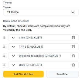 - Progression: Toggle this on to allow users to track their progress through the checklist.