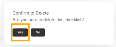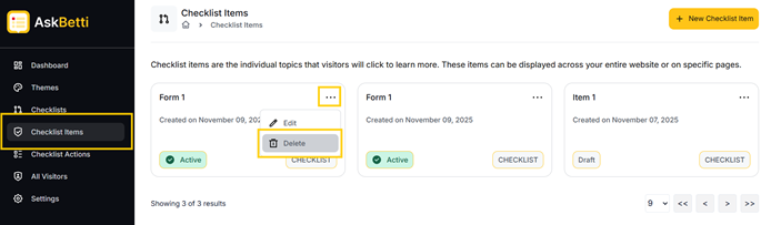 - You can delete a Checklist item by clicking on the three dots in the top right corner of the item name.