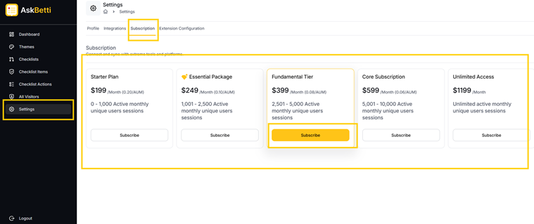 - Hover over the desired package to subscribe.