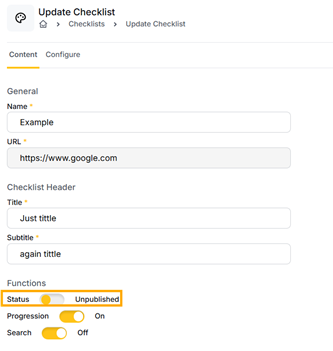 - You can publish the Checklist by clicking on the three dots in the top-right corner of the Checklist name.