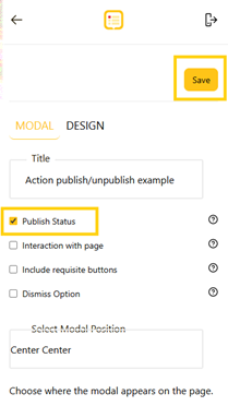 - Click the checkbox (if it’s unchecked) to turn it on and publish the action, making it live for your users.
