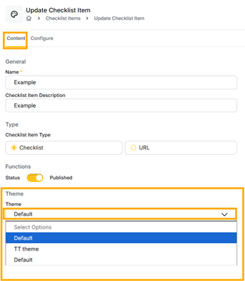 - You can select a theme by clicking on the three dots in the top right corner of the item name.
