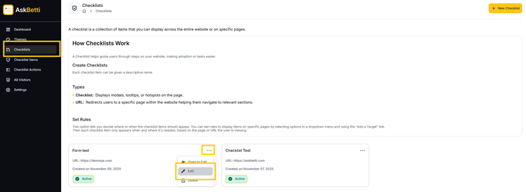 - Click on the three dots in the top-right corner of the Checklist name.